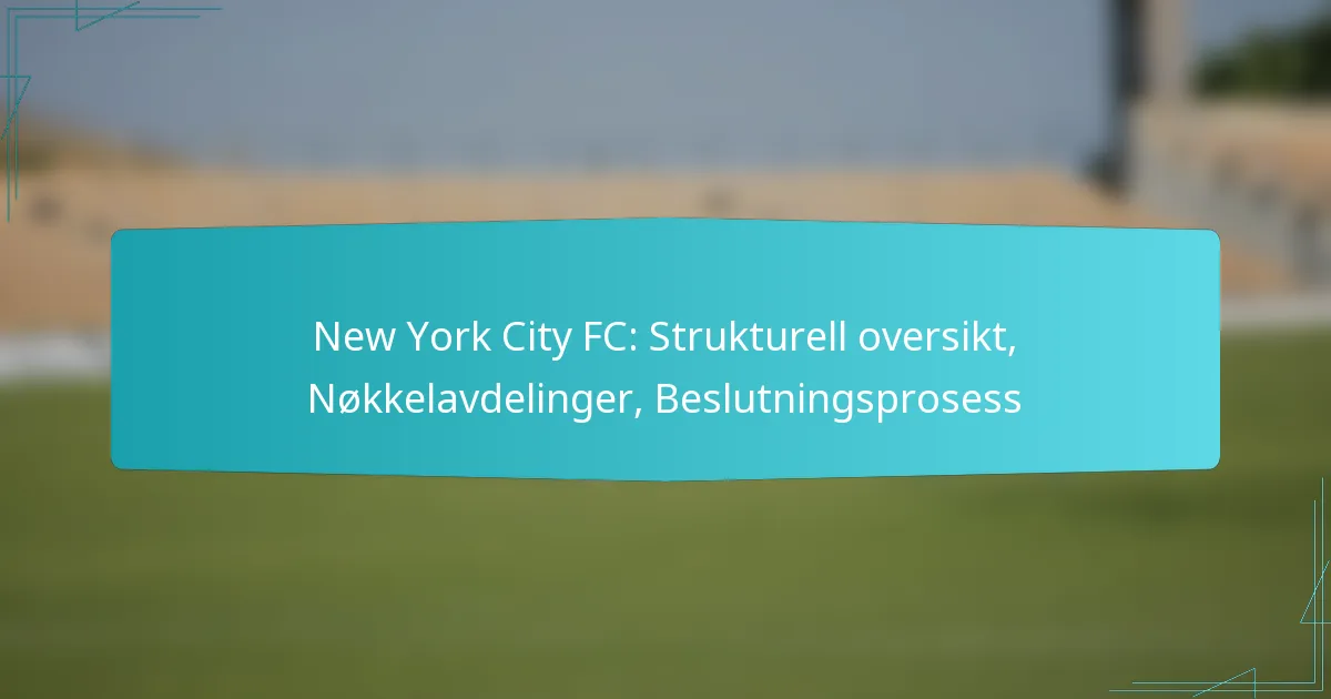 New York City FC (NYCFC) opererer innenfor en særpreget strukturell ramme som kombinerer eierskap, ledelse og driftsstrategier for å trives i Major League Soccer (MLS). Klubbens organisasjon legger vekt på samarbeid mellom nøkkelavdelinger som markedsføring, spillerutvikling og trening, som alle bidrar til dens suksess og samfunnsengasjement. Beslutningsprosessen i NYCFC følger en strukturert hierarki, som fremmer samsvar med strategiske mål gjennom samarbeidende innspill fra ulike interessenter.