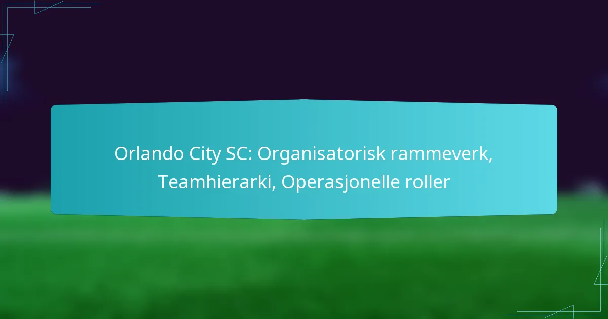 Orlando City SCs organisatoriske rammeverk er strukturert for å forbedre klubbens drift, spillerutvikling og samfunnsengasjement. Dette rammeverket inkluderer en definert teamhierarki med nøkkelpersoner som eierskap, administrerende ledelse, trenerstab og spillere, som hver bidrar til klubbens suksess i Major League Soccer. Operasjonelle roller innen organisasjonen spenner fra lederposisjoner som hovedtrener og general manager til viktig støttepersonell fokusert på spillerrekruttering og utvikling.